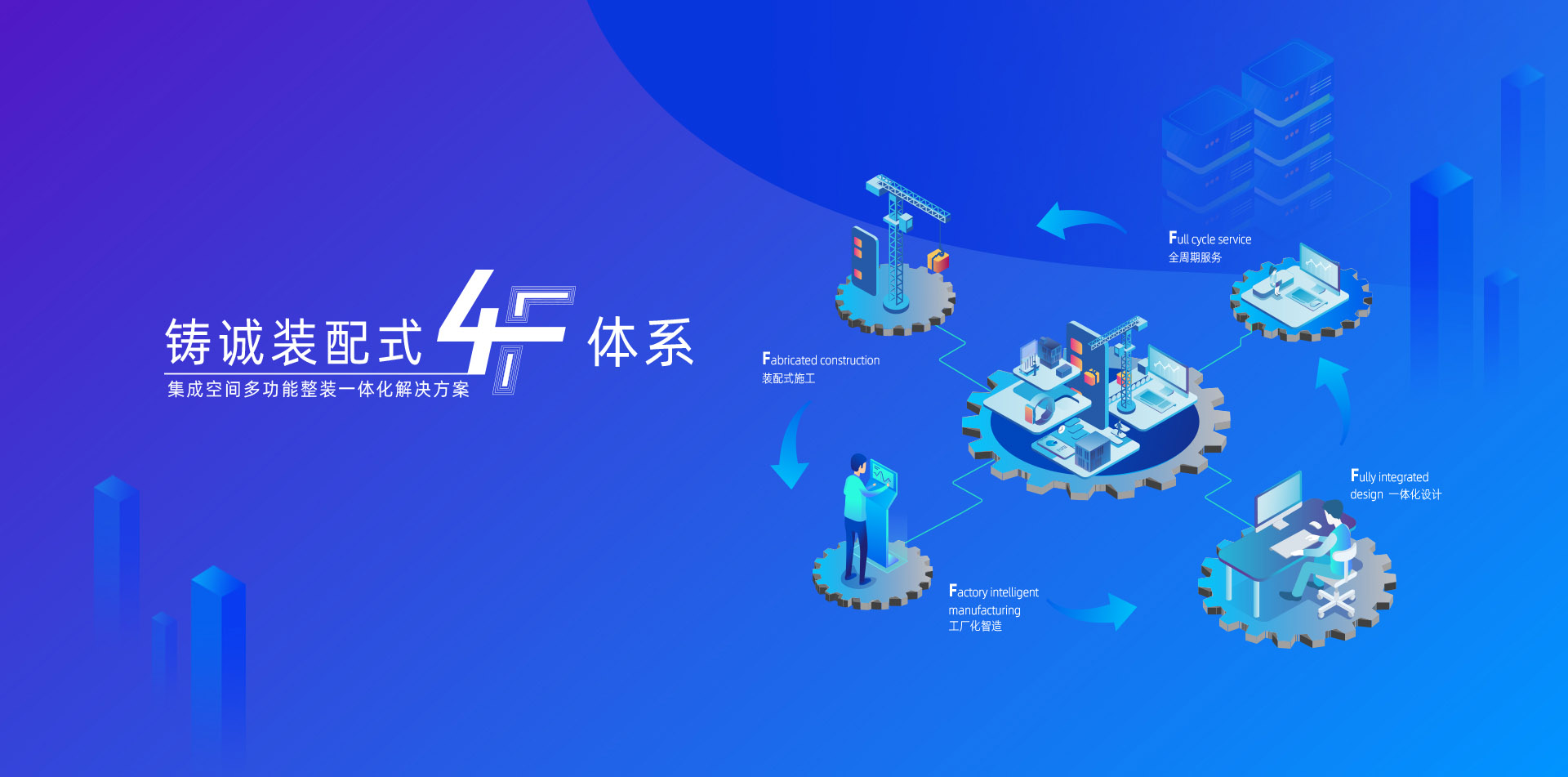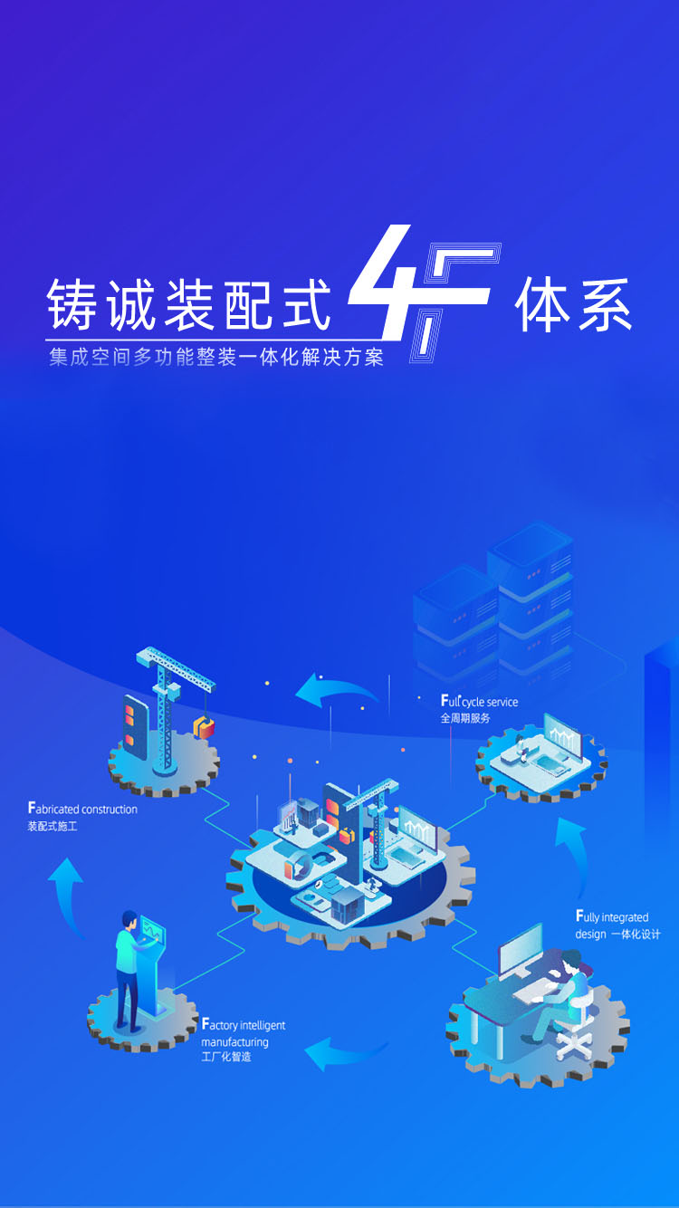 铸诚4F体系实现了水、暖、电、气、线与门、墙、吊顶、地面、家具只能等软硬装修装饰体系整装集成一体化